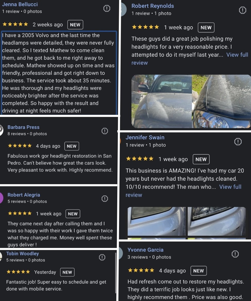 Mobile Headlight Restoration In Palos Verdes & The South Bay